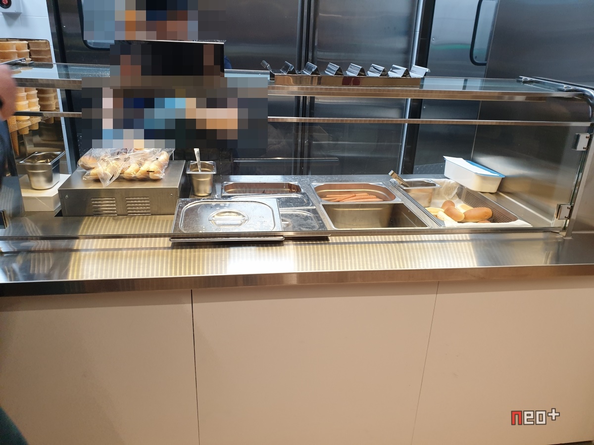 핫도그는 빵과 소시지만 주며 직접 소스를 뿌려 먹어야 한다.