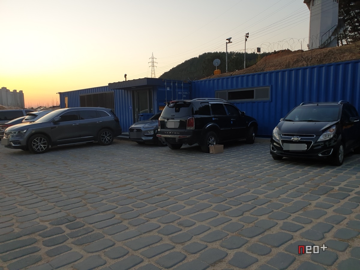 주차장 파란 컨테이너 박스