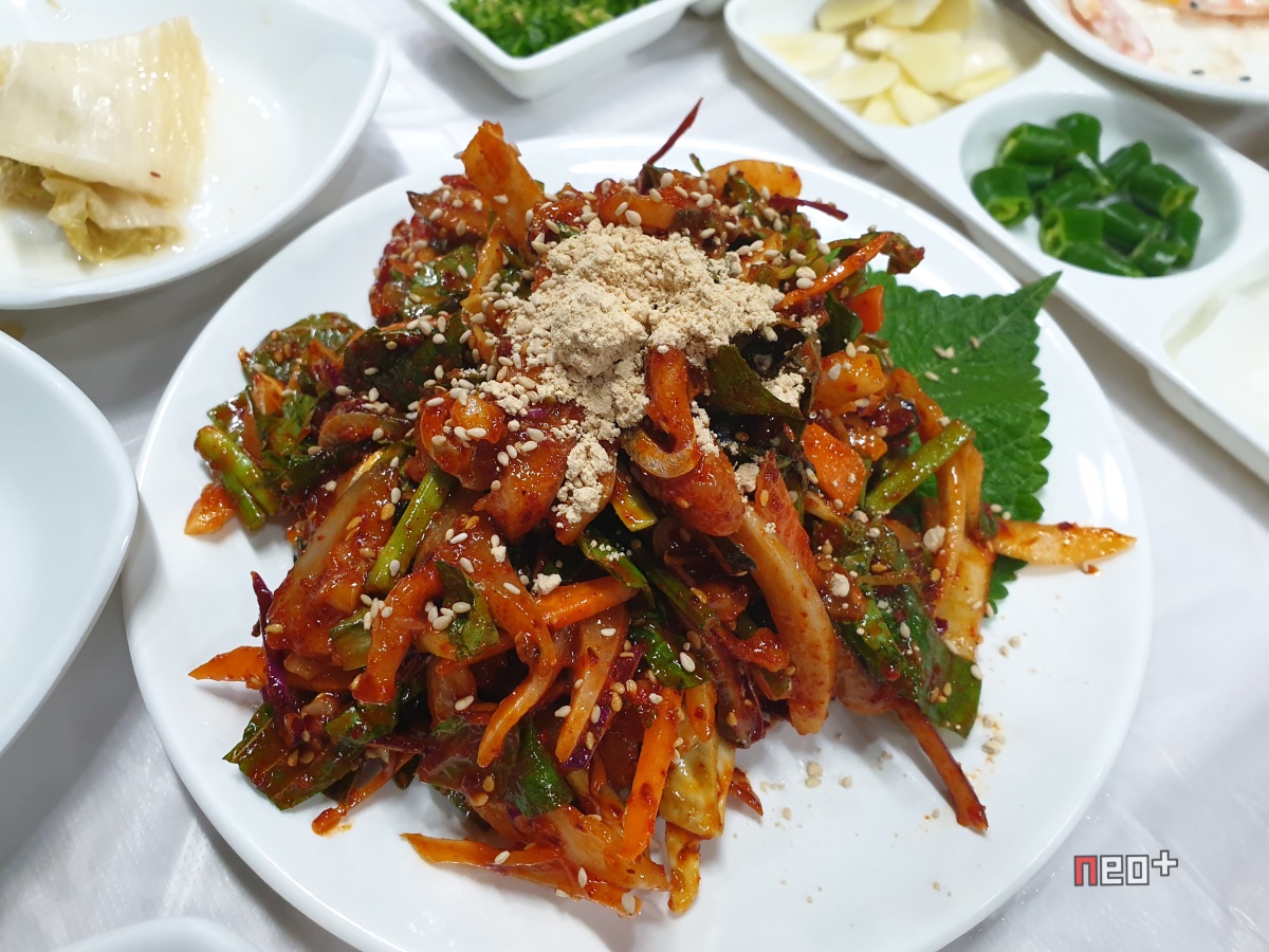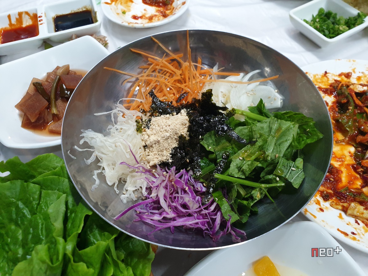 비빔야채, 전어회와 밥을 넣어 비빔밥처럼 먹으면 된다.