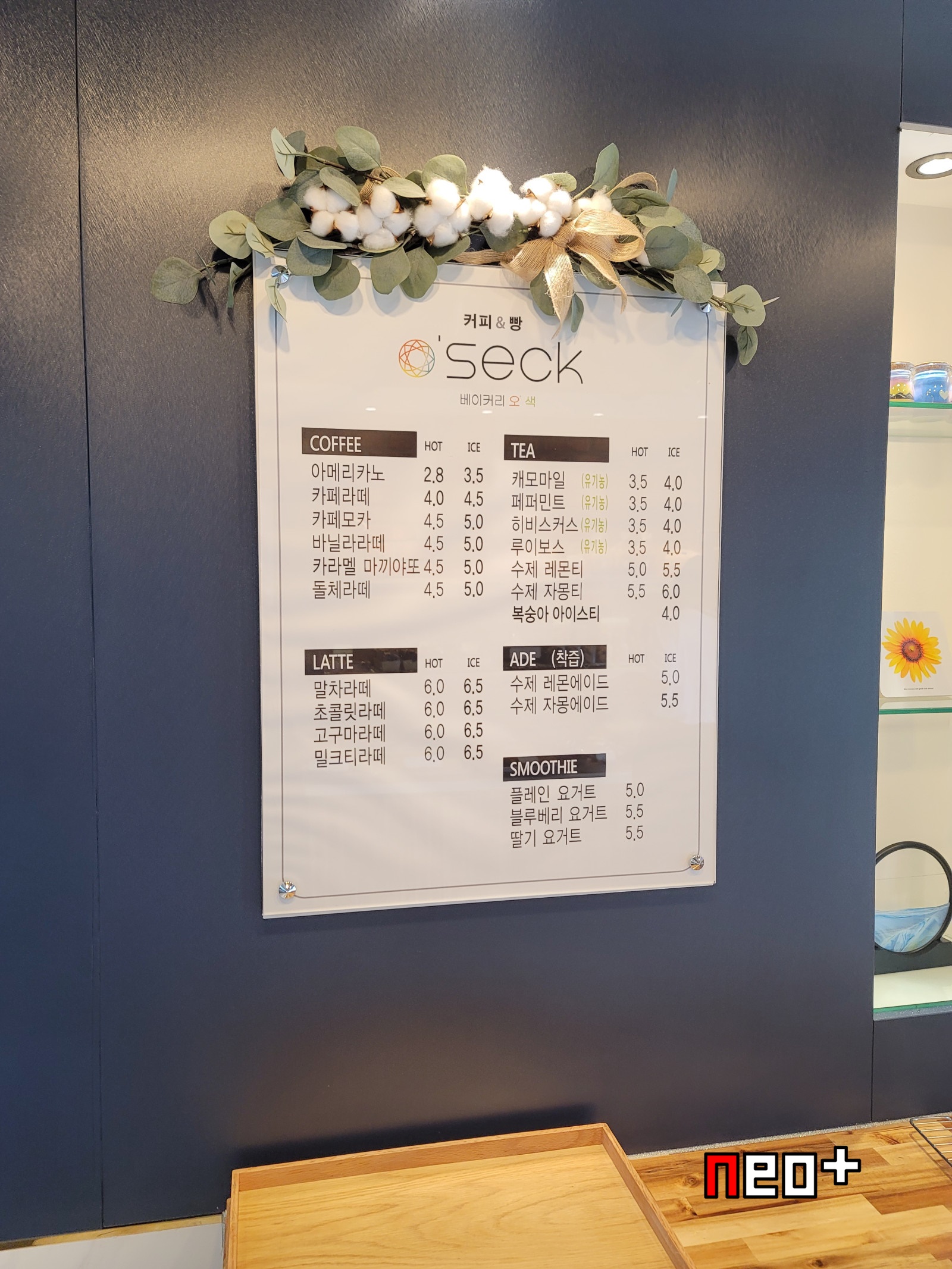 커피, 차, 라뗴, 에이드, 스무디 종류도 판다.