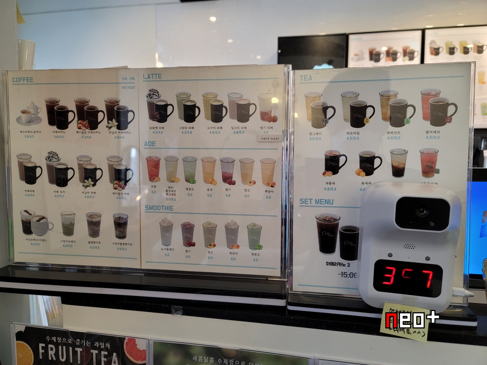 커피(COFFEE), 라떼(LATTE), 에이드(ADE), 스무디(SMOOTHIE), 차(TEA), 세트메뉴(SET MENU)
