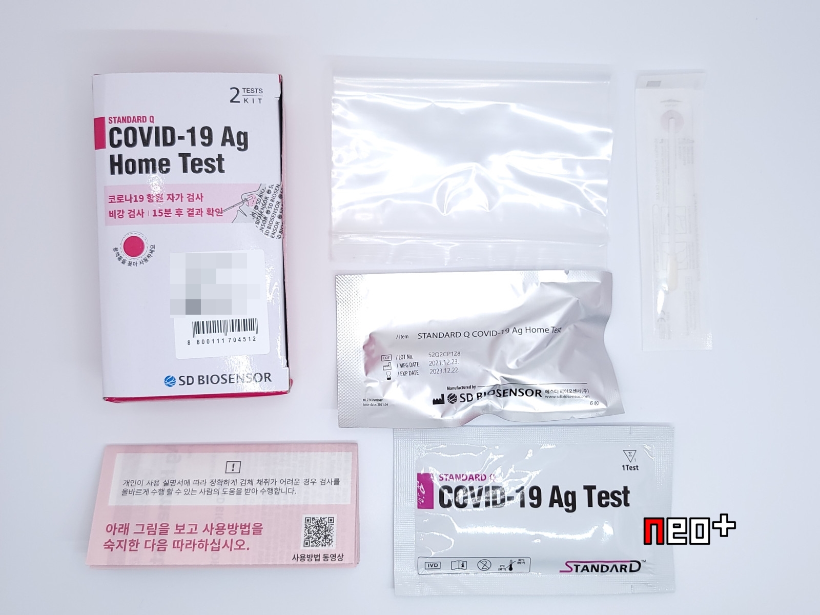 - 제품 구성 : 검사용 디바이스, 용액통&노즐캡, 멸균면봉, 사용설명서&퀵가이드