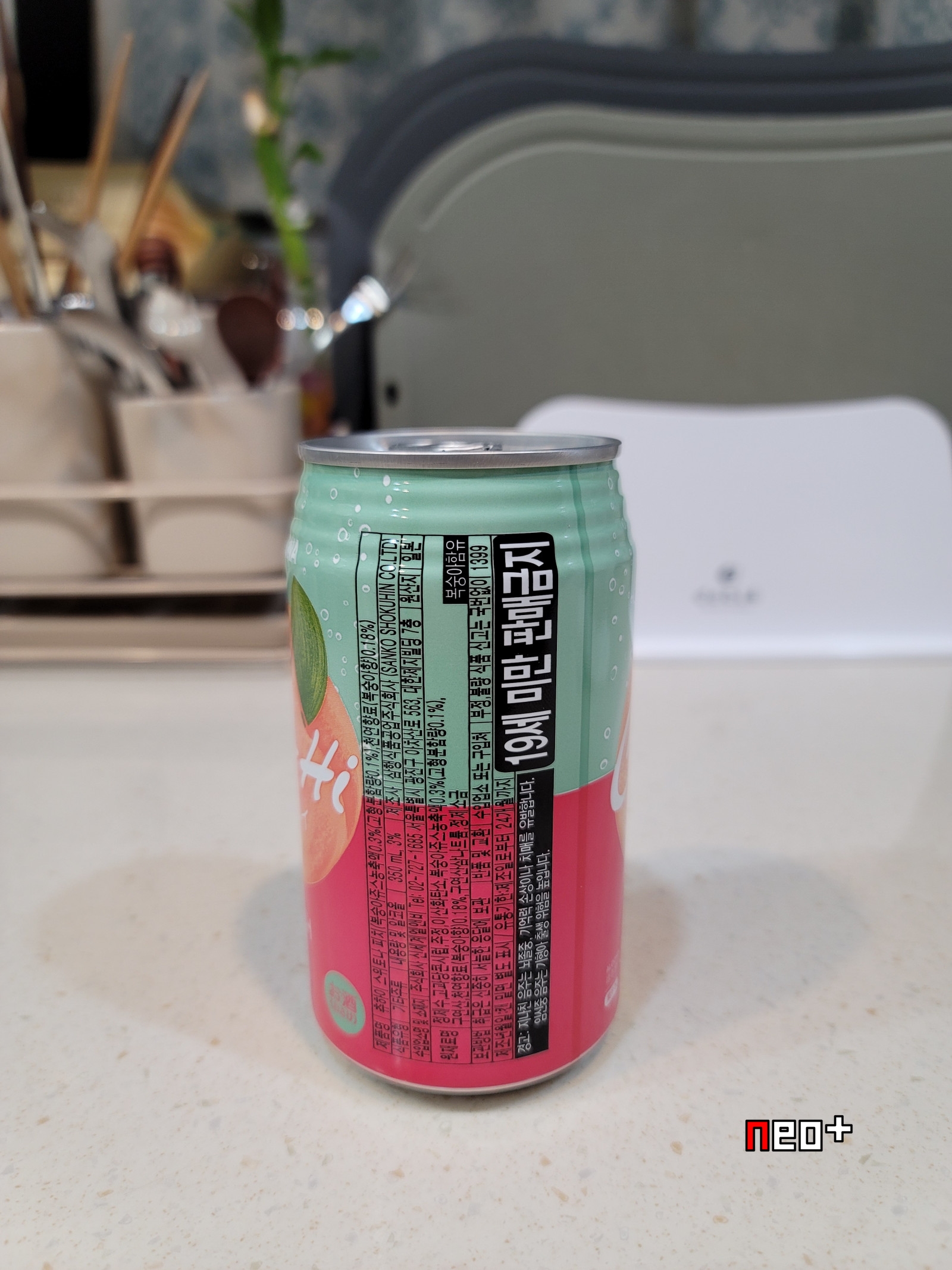 원재료명 : 정제수, 고과당콘시럽, 주정, 이산화탄소, 복숭아쥬스농축액, 구연산, 천연향료, 구연산삼나트륨, 정제소금