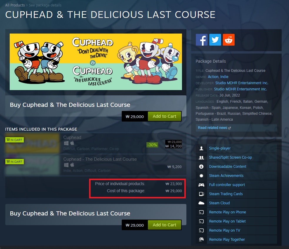 그런데 웃긴게 오늘 기준(2022년 7월 1일) 본편과 dlc를 따로 구매하는것이 합본보다 다 저렴하다.