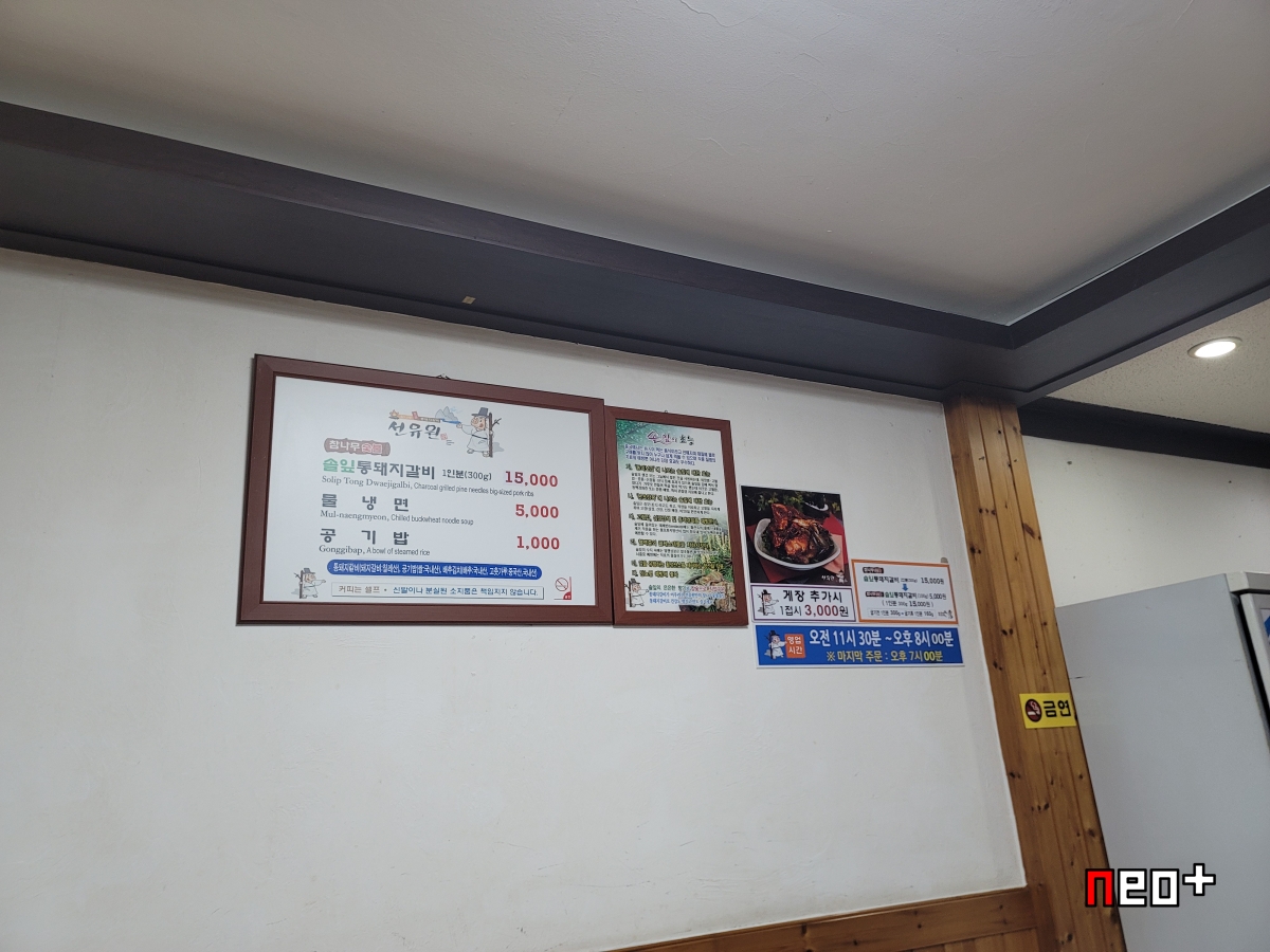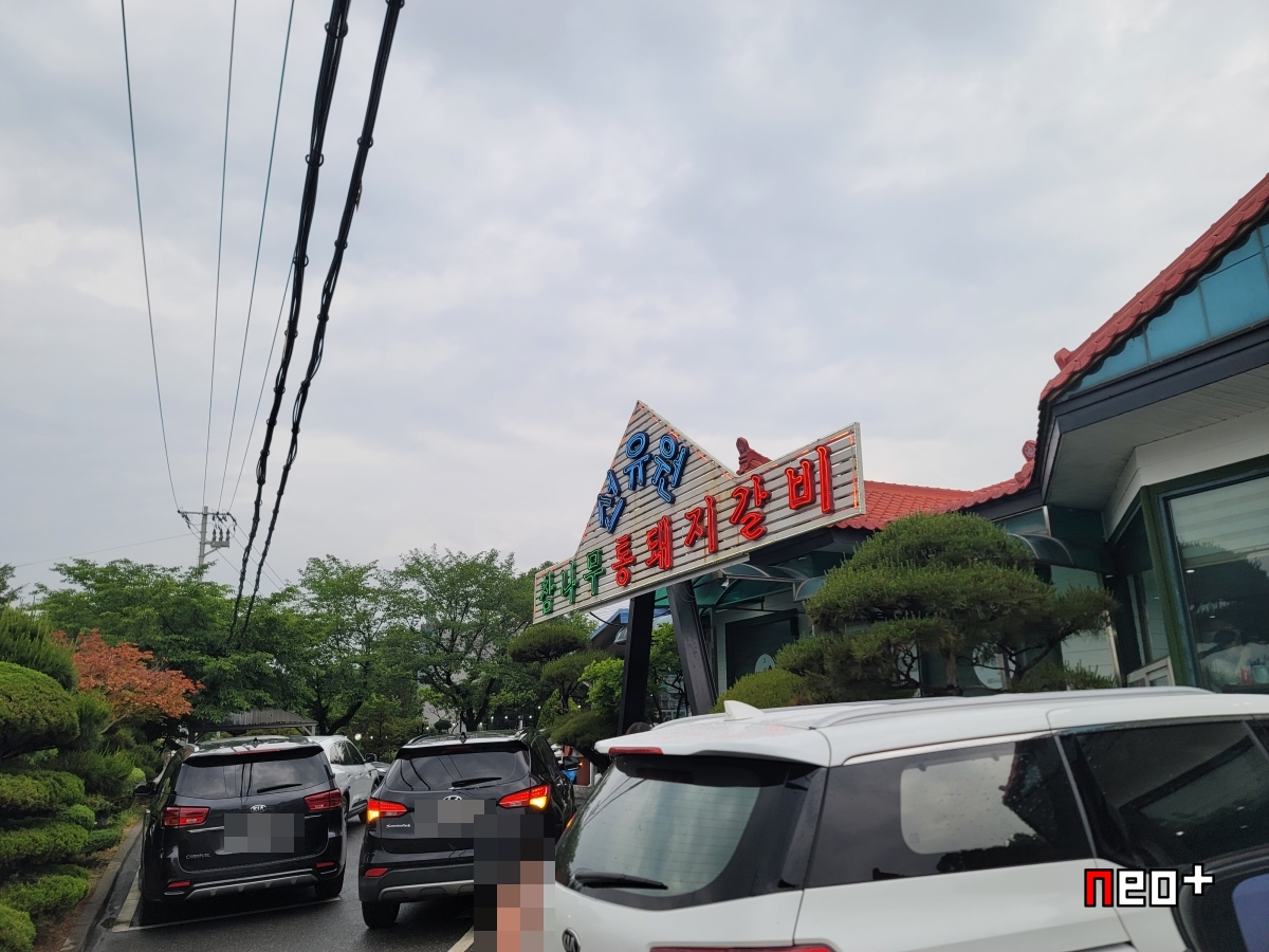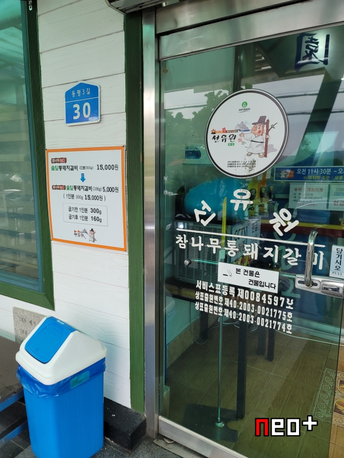 위에 사진처럼 '참나무 통돼지 갈비'를 판다.
