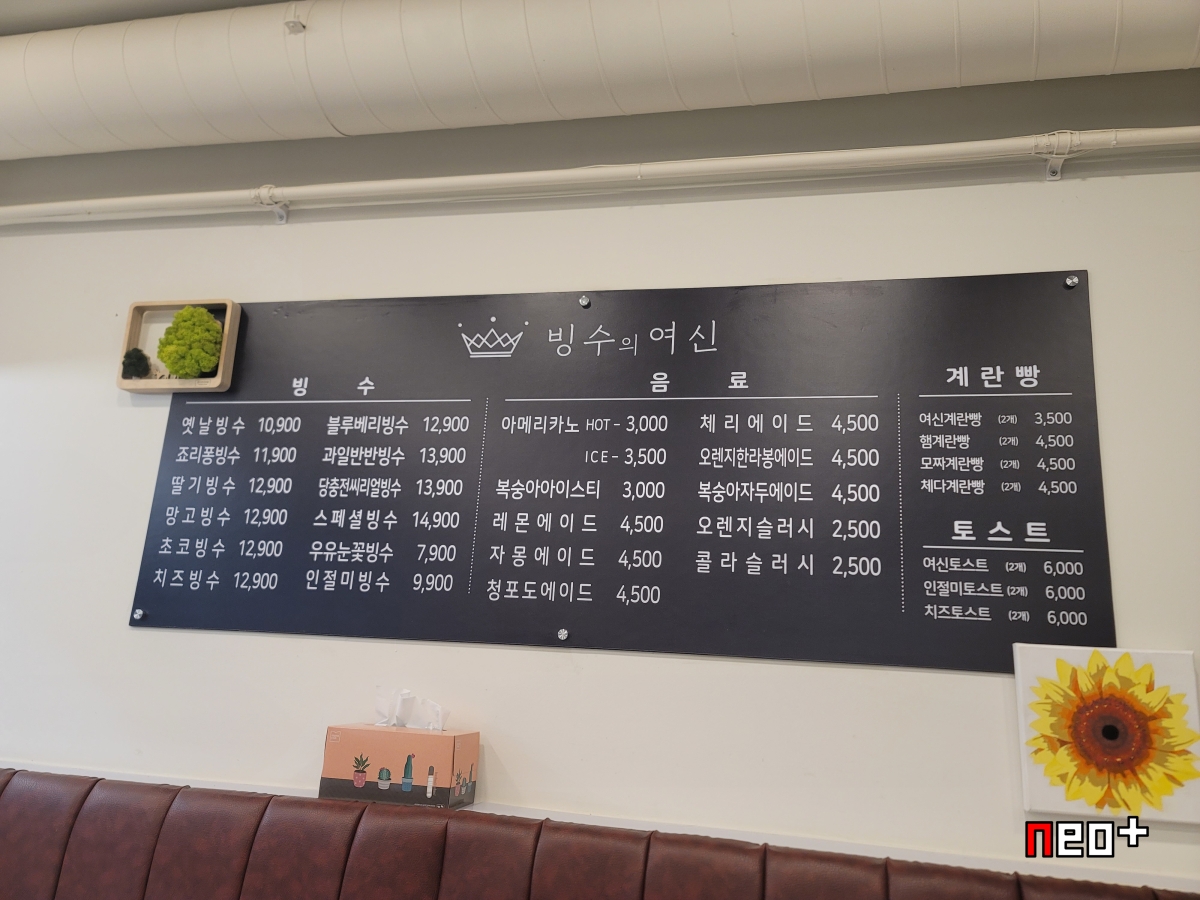 빙수의 여신 메뉴판