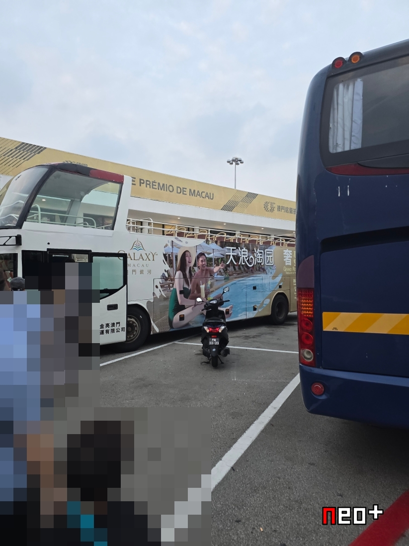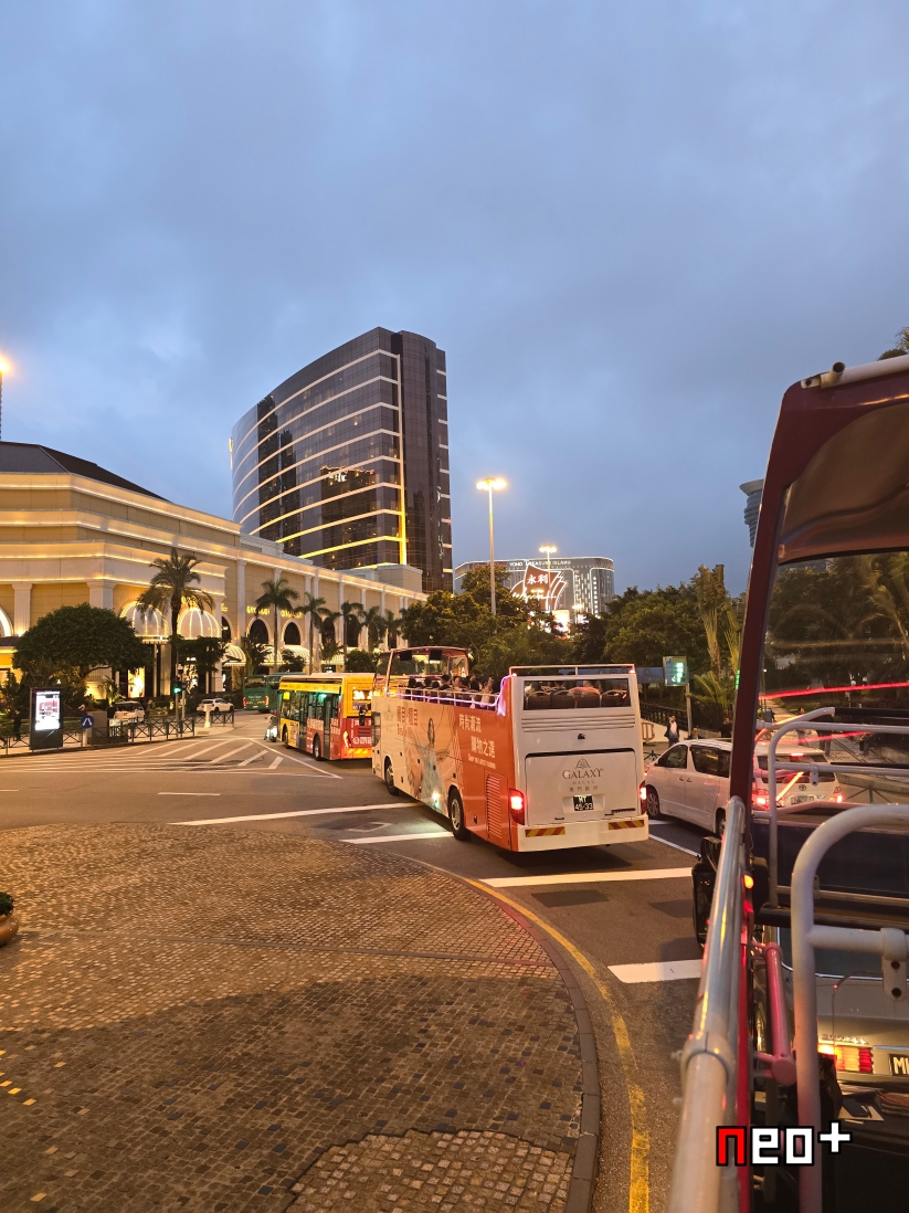 마카오 야경 투어 버스를 타러 가는중