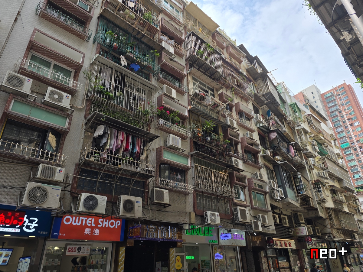 마카오 아파트의 베란다는 에어컨 실외기와 빨래가 널려있는게 인상적이다.