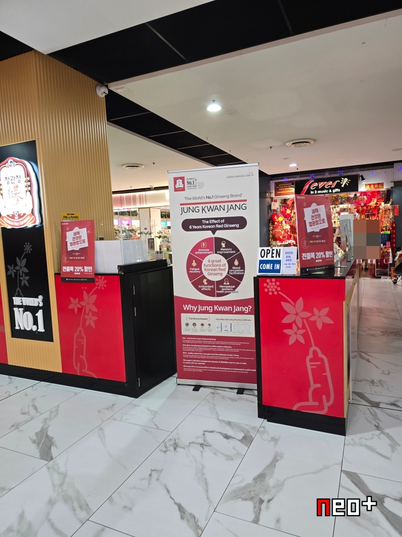 헤이마켓 건물내 '정관장(JUNG KWAN JANG)'이 있다.