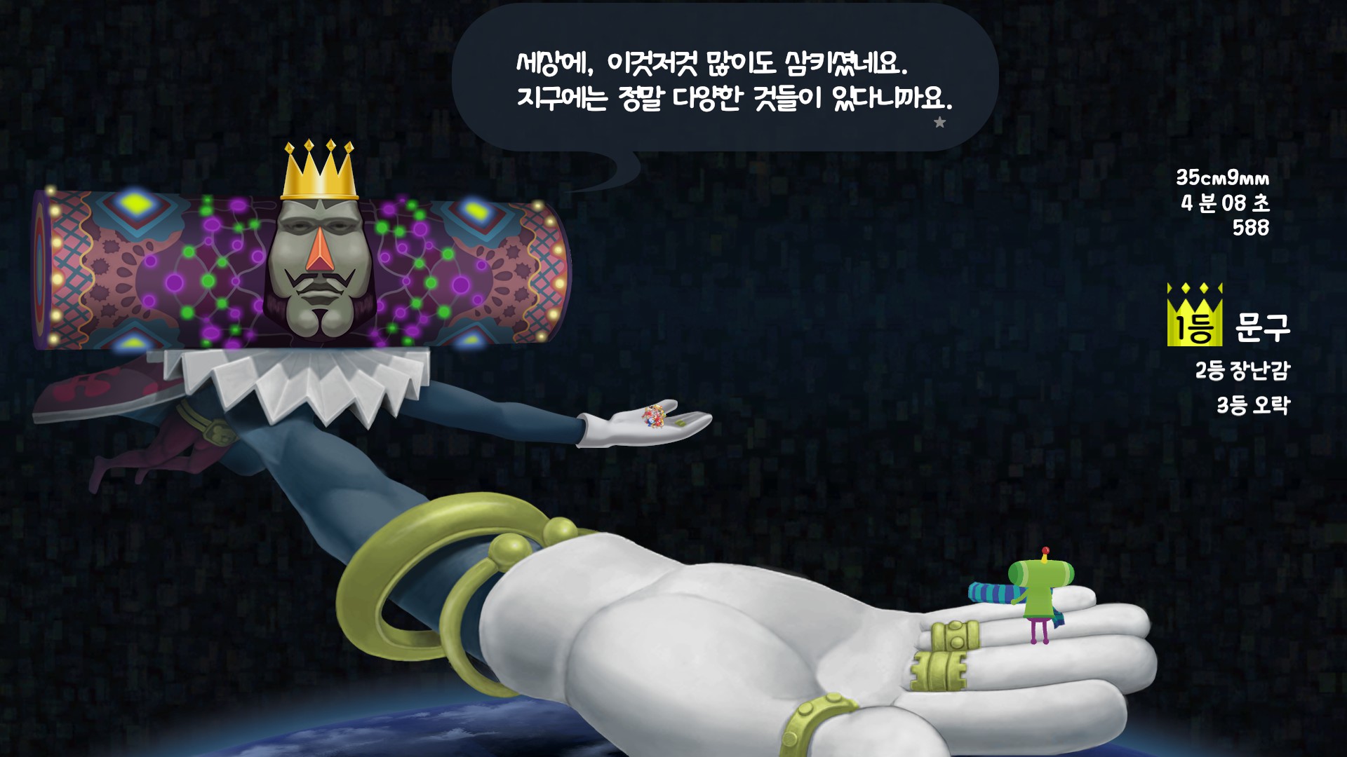 장르 : 로맨틱 접착 액션, 굴리기 퍼즐, 만지고 굴려서 크게 만드는 게임, 코즈믹 호러