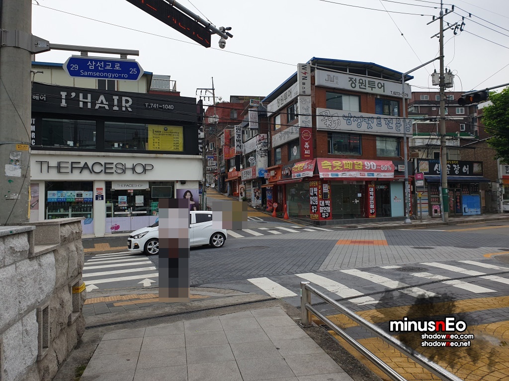 인터넷을 찾아보면 '더페이스샵' 골목으로 들어가라고 하는데 그 '더페이스샵' 상가가 보인다.
